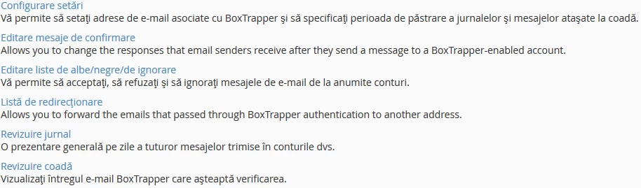 Acest tutorial explică modul în care se activează și setează BoxTrapper în cPanel.