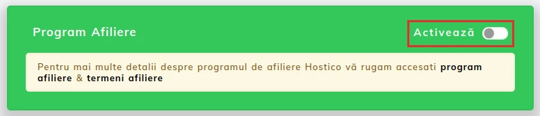 - În pagina deschisă se poate vedea fereastra în care putem activa Programul de Afiliere;