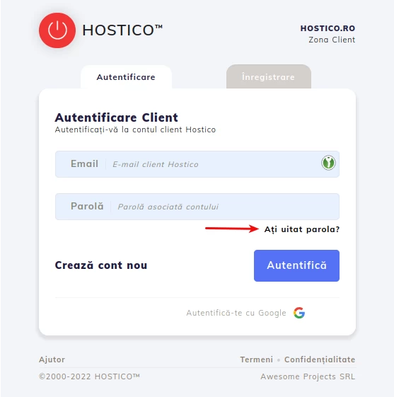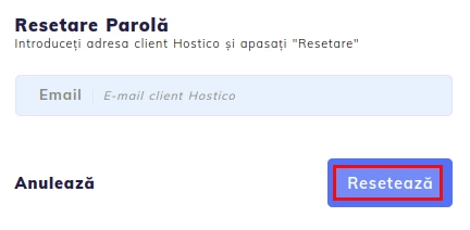 Resetarea parolei contului de client Hostico